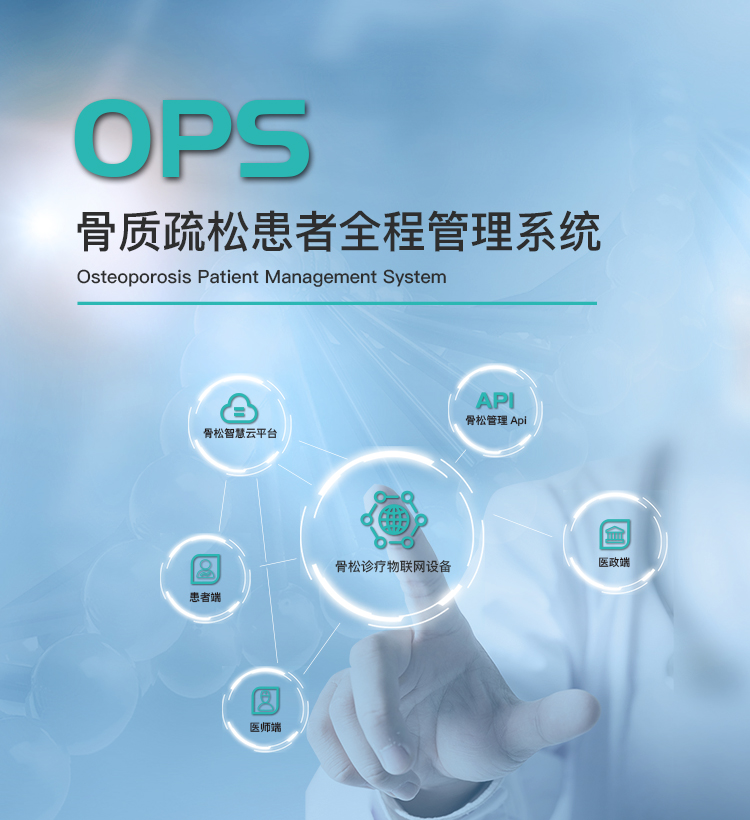 骨松管理系統(osteoporosis patient managerment system,簡稱OPS)是骨質疏松患者軟硬件一體全程管理系統,是由留美歸國的骨松專業博士、骨松專科主任領銜,參照美歐經驗,結合我國醫療實際,經過超過十年醞釀、探索、實驗實踐,凝聚了多位醫療專家及醫工專家的心血與智慧,自主開發、自有知識產權的軟硬件一體系統。