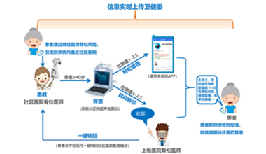 可以便捷的實現對患者多渠道患教,篩查數據自動上傳,患者的自動化管理、診療復查信息患者實時自動接收、在社區醫院和上級醫院之間流暢的雙向轉診等功能,可以高效的解決骨質疏松防控診療中存在的問題,同時大大加速上級醫院和社區醫院的骨質疏松學科建設。本系統還可將統計數據提供給衛生主管部門,便于主管部門對骨松慢病的高效管理。本系統經過國內多家三甲醫院、社區醫院應用超過三年時間,技術成熟,得到了使用單位專家的高度認可。